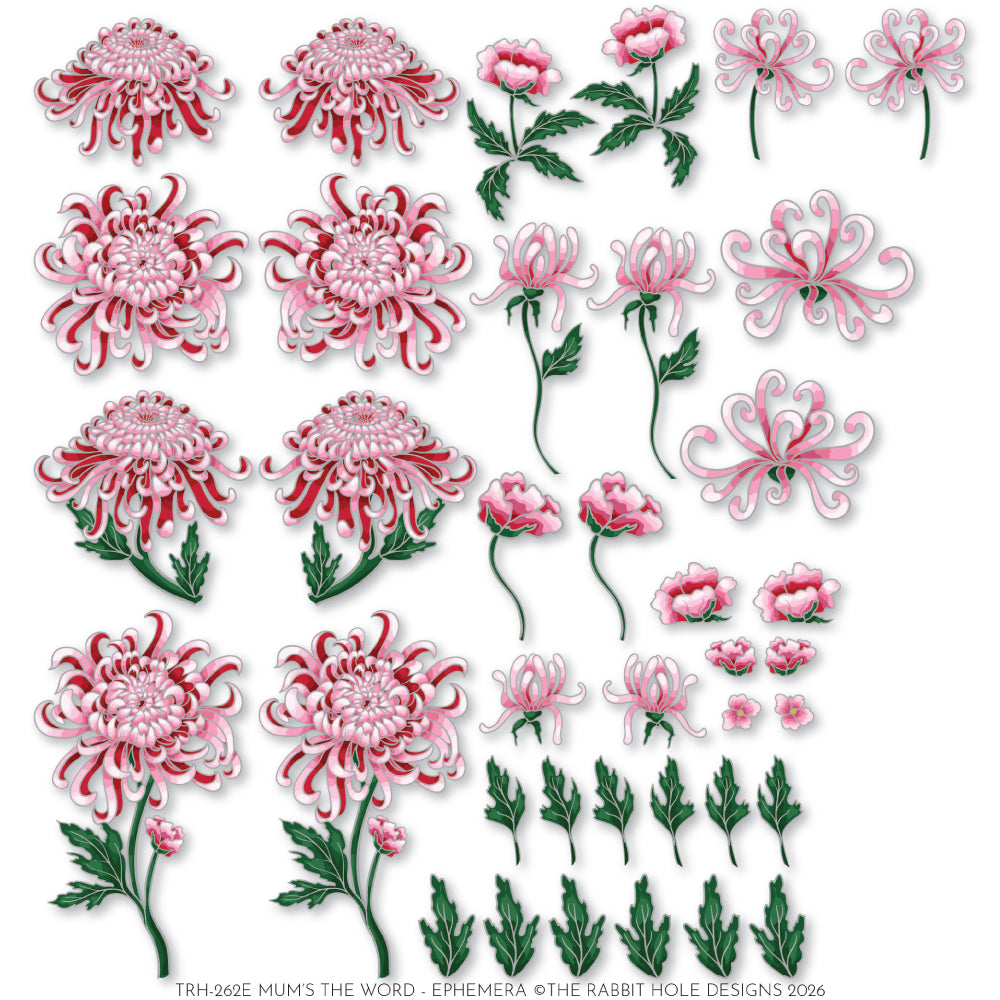 Transform your creative projects with this comprehensive ephemera collection from The Rabbit Hole Designs. The Mum's the word pack delivers 38 meticulously crafted botanical pieces—flowers, foliage, and delicate florals—designed to add sophisticated dimension to your work. Whether you're composing scrapbook layouts, handcrafted cards, mixed media pieces, or journal spreads, these intricately detailed embellishments provide the refined aesthetic that distinguishes polished designs. Each element is thoughtfully rendered to enhance visual interest and bring botanical elegance to every application.